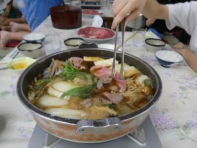 2日目の夕食の様子です。「今夜はすき焼きよ〜!」