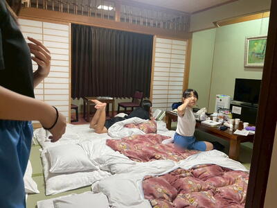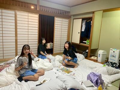 就寝の放送が流れ、今日の1日も幕を閉じます。明日はクラス別行動、一生の思い出を級友と作ってくださいね。おやすみなさい。