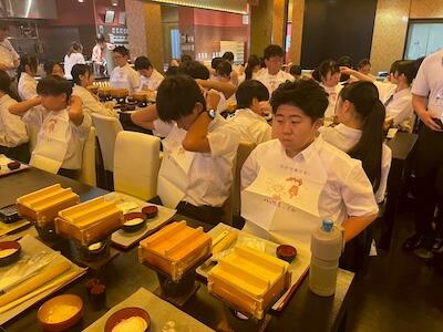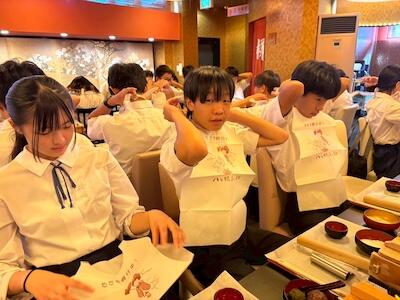 京都駅付近のレストランで食べる修学旅行最後の昼食です。