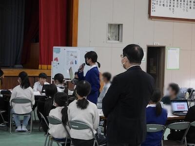 本日は、春日部市教育委員会の先生に本校の授業を見ていただきました。本校は今、教科等横断的な学習について研究を進めていて、来週はその発表があります。職員全員が指導法の研究を進め、よりよい授業ができるようにがんばっています。
