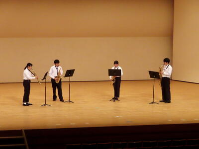 本日は、羽生市産業文化ホールにて第47回埼玉県アンサンブルコンテスト東部地区大会が行われました。本校からも吹奏楽部の2つのグループが参加しました。1つ目のグループは、金管打楽器六重奏「七つの惑星、そうして目に見えないもの〜『星の王子さま』のエピソードによる組曲」を演奏しました。2つ目のグループは、サクソフォン四重奏「『サクソフォーン四重奏曲』よりII」を演奏しました。どちらのグループもこれまで毎日一所懸命に練習をしてただけに素晴らしい演奏でした。参加したみなさん、お疲れさまでした。素敵な演奏でした。