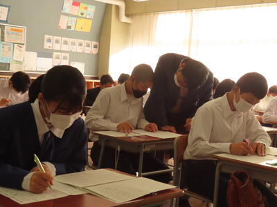 本日の授業の様子をお伝えします。本日、3年生は最後の実力テストでした。ちょうど三者面談の最中でもあり、少しずつ進路も決まってきた頃だと思います。そんな中行われたテストに3年生は真剣そのものに取り組んでいました。