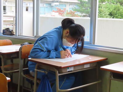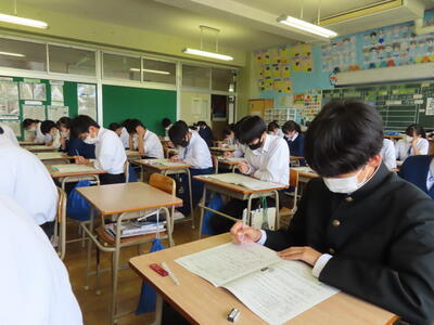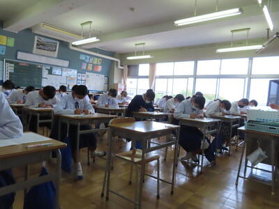 本日は、中間テスト2日目でした。今日も生徒は真剣な表情でテストに臨んでいます。特に3年生は受験への意識もあり、どの生徒も引き締まった表情でした。日頃の学習の成果を発揮することはできたでしょうか?