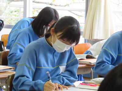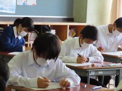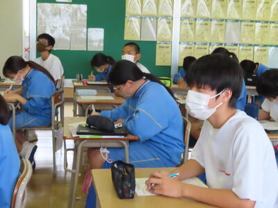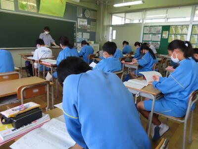 1・2年生はもちろんのこと、3年生も切替をして、真剣に授業に取り組んでいます。中間テストまで2週間を切り、一段と学習に熱が入ります。