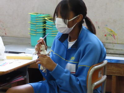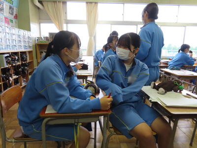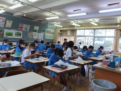 本日は授業の様子をお伝えします。美術では木彫品の型取りをしていました。また英語の授業では、比較級を学習していました。家庭科では間取りについて、数学は、学び合い教え合い(リトル・ティーチャー)活動をしていました。今日も生徒中心の主体的な学習をしています。