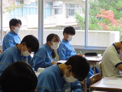 本日は授業の様子をお伝えします。3年生の教室を訪問していた時のことです。生徒から、入試の面接について質問をされました。10月も半ばとなり、いよいよ受験モードのようです。早い段階から取り掛かり、疑問はひとつずつ解消していきましょう。もちろん私にも質問をしてください。大歓迎です。大きな行事がひとつずつ終わり、自分で乗り越えなければならないハードルに向けて本格的になる時期となってきました。いつも話しているように「やりきった」と胸を張って言えるようにがんばってください。いつも応援しています。