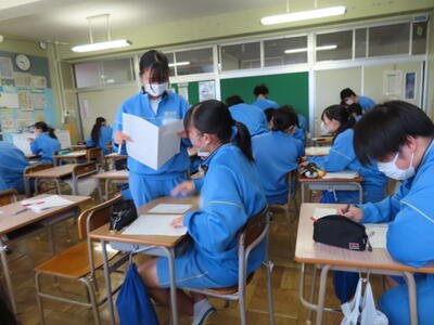 話は変わりますが、本日14時58分頃、比較的大きな地震がありました。先生たちは立って授業をしているので、最初気づかなかったようですが、生徒たちはすぐに机の下に身を隠し、安全を確保する行動ができていたとのことです。日頃のこうした行動が「もしも」の時に役立ちます。これからも「自分の命は自分で守る」を合言葉に適切な行動ができるよう、日頃から行動を確認しておきましょう。