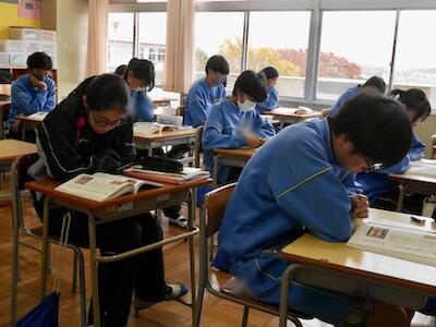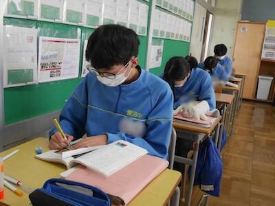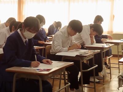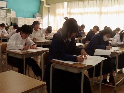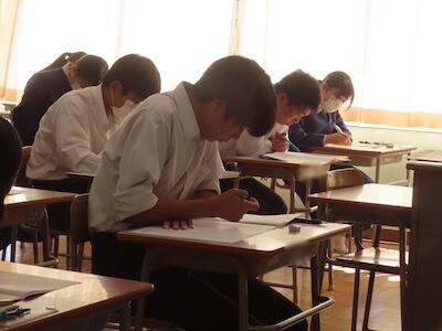 本日3年生は、東部地区学力検査を受検しました。このテストは年3回行われるもので、志望校選びの資料としても大切なものです。今回が最後となる東部地区学力検査、真剣な表情でテストに臨んでいます。