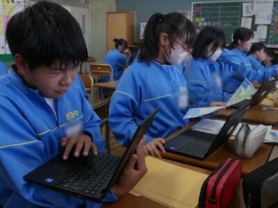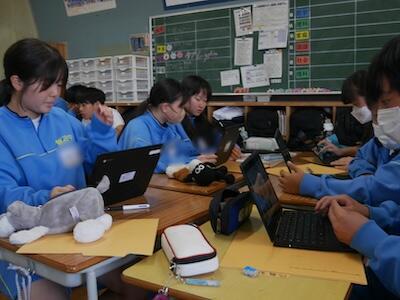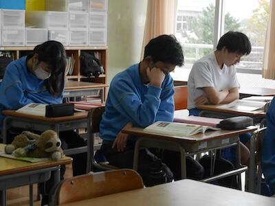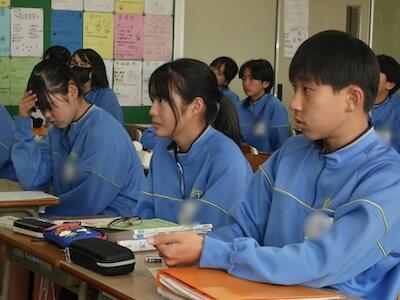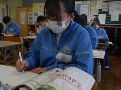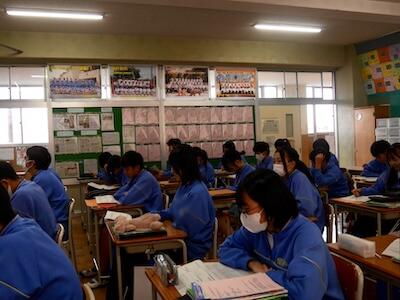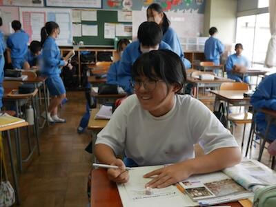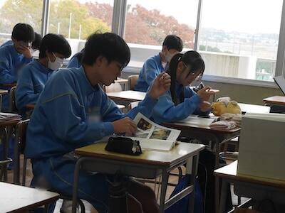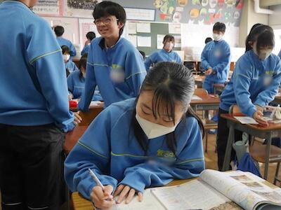 休み時間の様子です。みんな授業中とは違う楽しげな表情を見せてくれます。凛と和のハーモニー、飯中生の素晴らしさです。