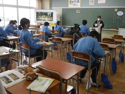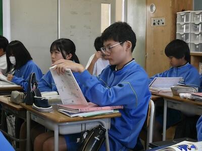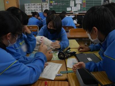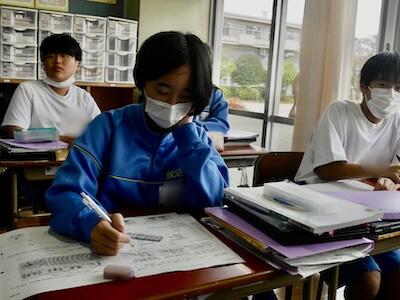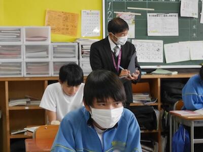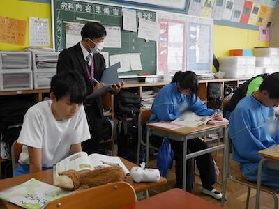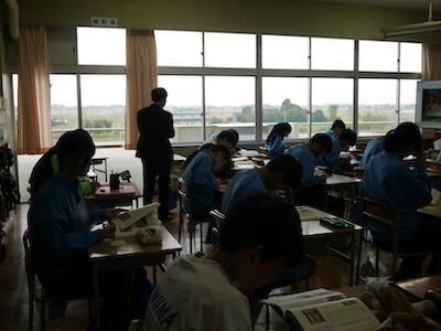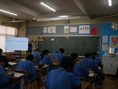 本日の授業の様子です。3年生の国語は松尾芭蕉「夏草」の学習をしていました。また数学は、相似について学習をしていました。1年生の家庭科は、「万が一の災害に備えて」というテーマで学習をしていました。簡易ライトやいろいろな実物を見ながらの学習は楽しいものでした。また理科は、身のまわりの現象として「光」「音」「波」について学習をしていました。どの教科も興味・関心の高まる授業でした。