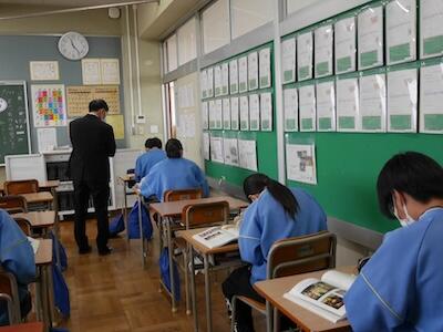 本日の学活の様子です。3年生は進路に関する面談、学習をしていました。1年生は、鎌倉ウォークに向けた鎌倉調べを行っていました。来年が楽しみですね。