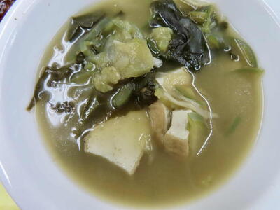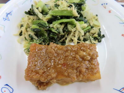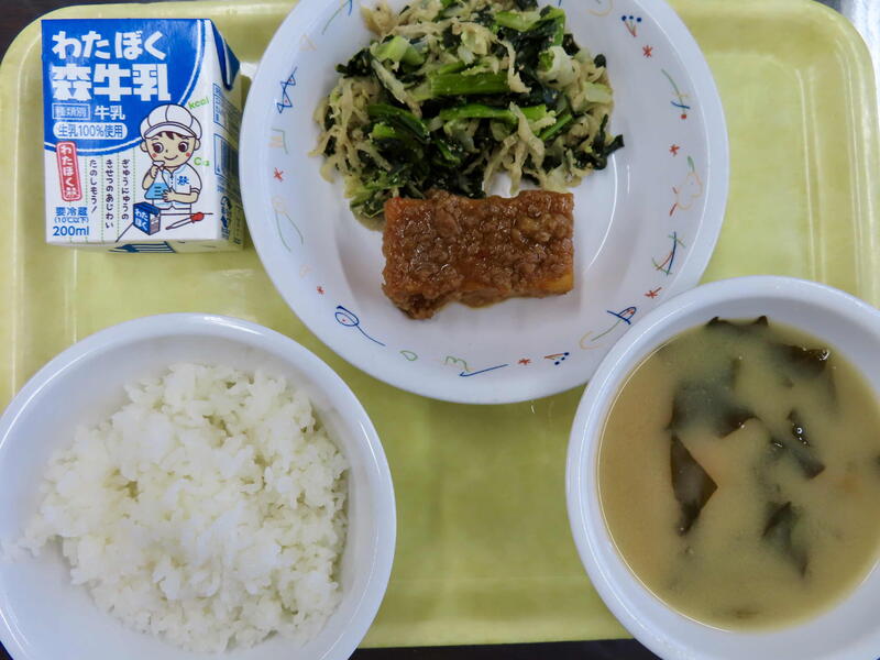 ごはん、牛乳、厚揚げのマーボーあんかけ、みそ汁、胡麻和え