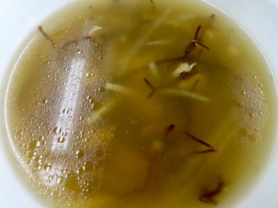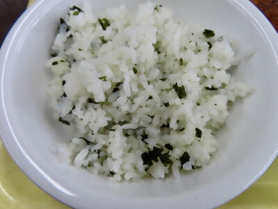 ジャーマンピラフ、牛乳、ささみのレモン煮、トマトスープ、グリーンサラダ