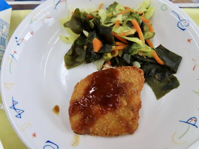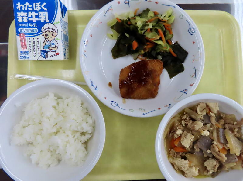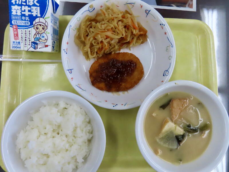 ごはん、牛乳、メンチカツ、みそ汁、切り干し大根