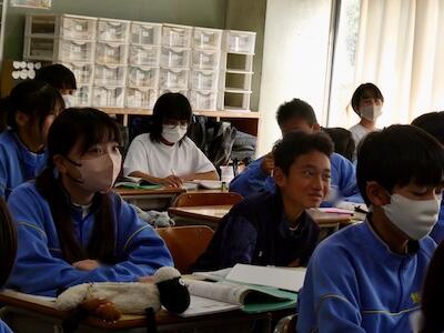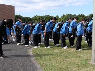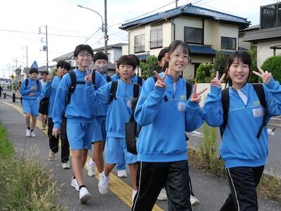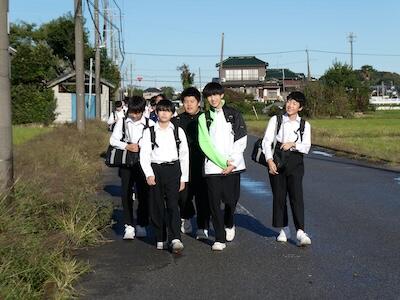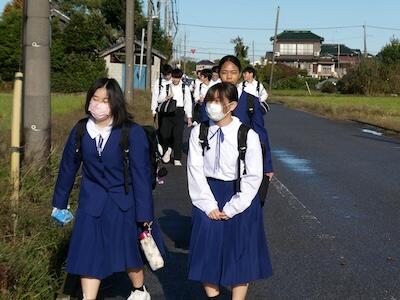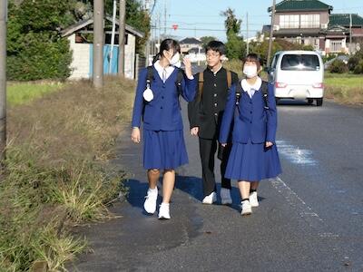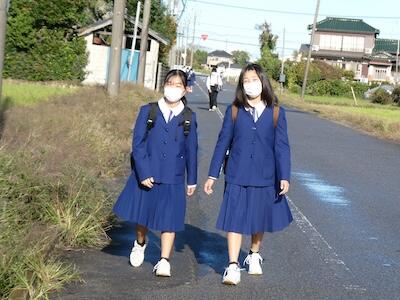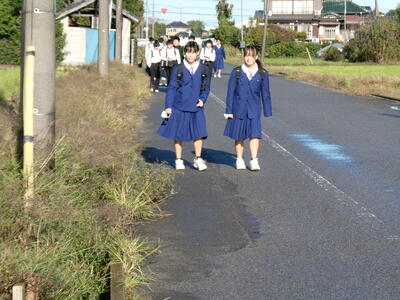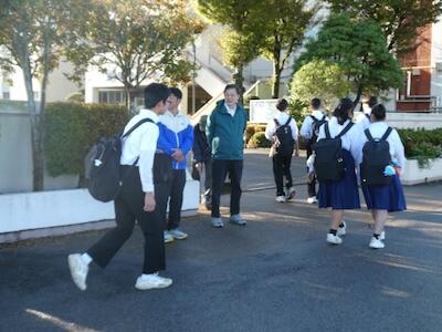 週の始まりは登校の様子からです。今朝はちょっと先も見えないほどの霧が立ち込めていました。しかし登校の時間には、霧も晴れ、晴天になり、久しぶりに暖かな朝となりました。生徒たちも元気に登校しています。