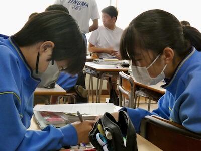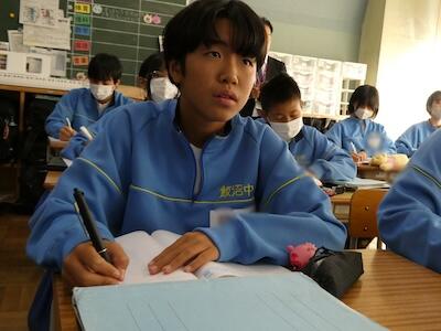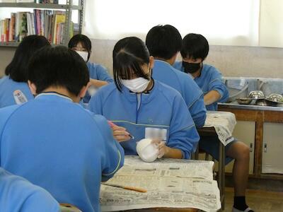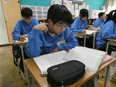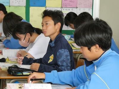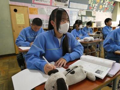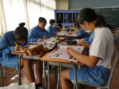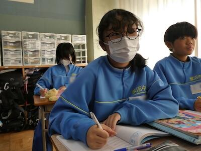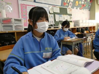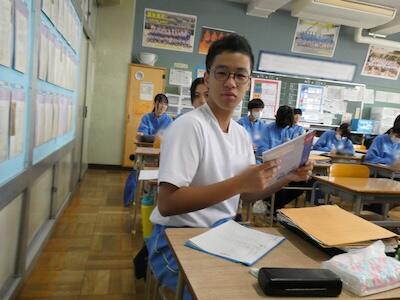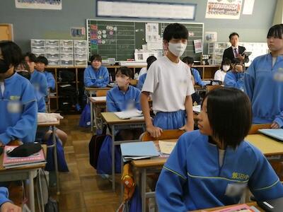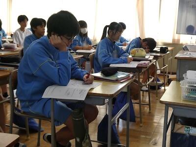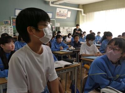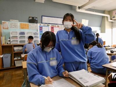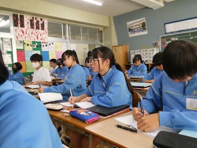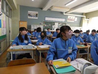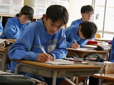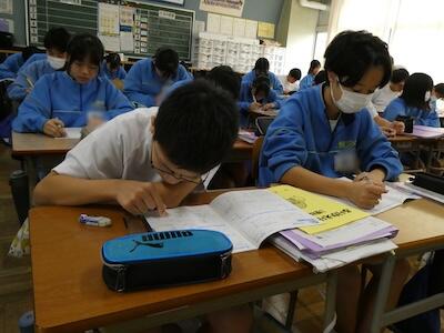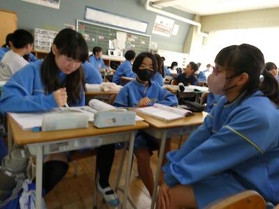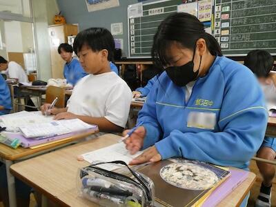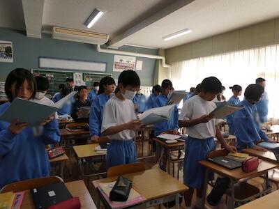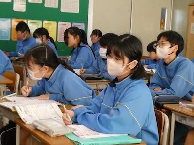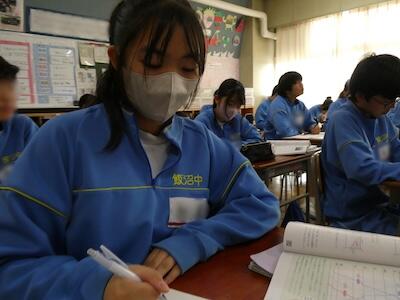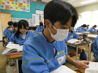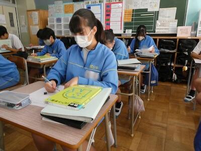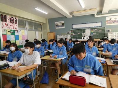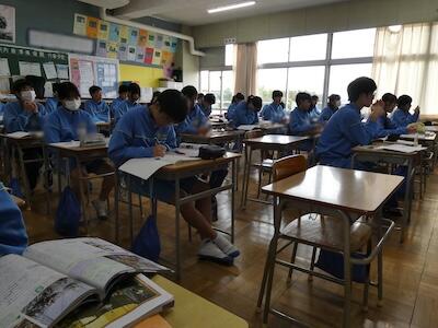 本日の授業の様子です。3年生の理科はイオンを使った式について学習していました。2年生の家庭科では、「加工食品の選択と活用」について学習していました。1年生は「いろは歌」の暗唱をしていました。色は匂へど 散りぬるを 我が世 誰ぞ 常ならん。。。みんなしっかりと暗唱ができていました。