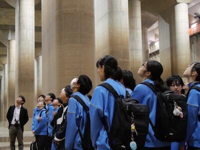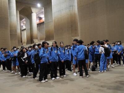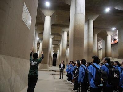 本日2年生は、校外学習として、龍Q館見学とボランティアゴミひろいを行いました。この活動は、SDGsの理念に基づき、ゴール11および13について学ぶ機会としています。首都圏外郭放水路では、地域の治水について学びました。地下神殿では、その広大なスケールに驚くとともに、地域を守る仕組みを知りました。見学後は、いくつかのコースに分かれ、ゴミひろいをしながら、学校に戻りました。学校に到着後はゴミの分別をし、活動が終了しました。私は出張のため、一緒に行くことは叶わなかったのですが、素晴らしい活動だったとの報告を受けています。2年生のみなさん、今日は大変よくがんばりました。少しでも住み良い町にするためのゴミひろい活動、お疲れ様でした。(教務撮影)