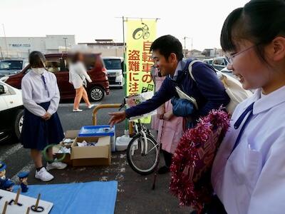 本日は、本校生徒の代表が、粕壁市役所くらしの安全課のお手伝いとして、南桜井ヤオコーさん店頭にて防犯モデル地区キャンペーンを行いました。啓発チラシの配布や輪投げde防犯ブースのお手伝い、館内放送による防犯啓発メッセージなどを行いました。庄和地区は令和6年には、「特殊詐欺」、「侵入窃盗」が多かったそうです。庄和地区の防犯意識が高まり、安心・安全な春日部になるといいですね。(キャンペーンに関わっていらっしゃる方々にはHP掲載の許可をいただいています。)