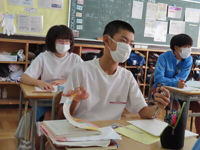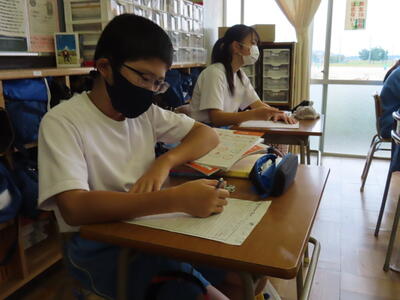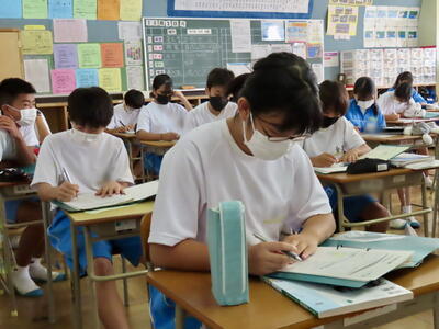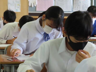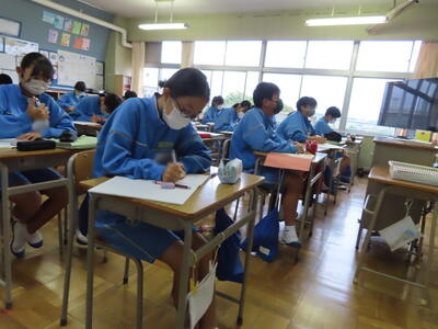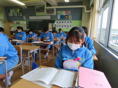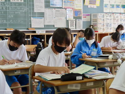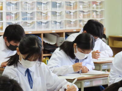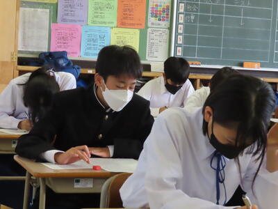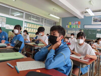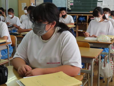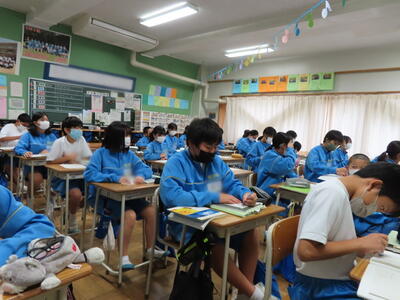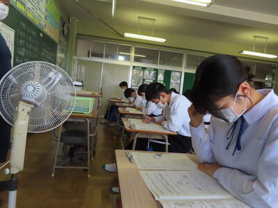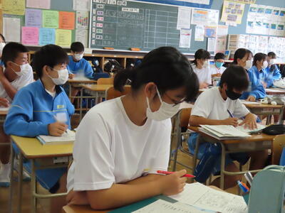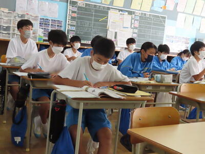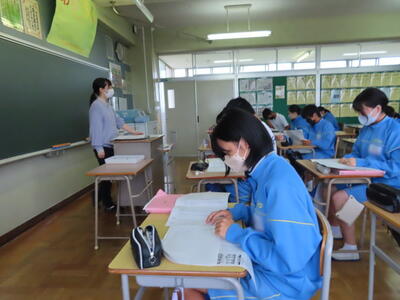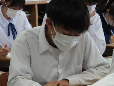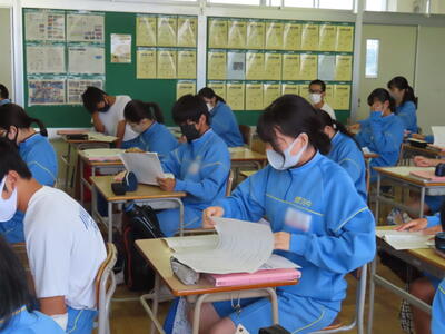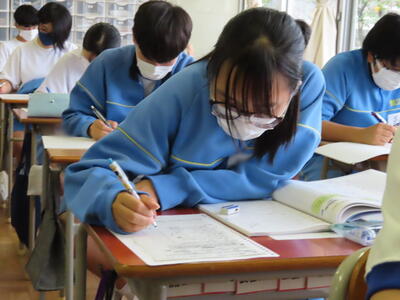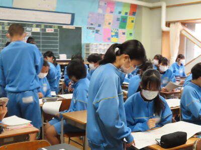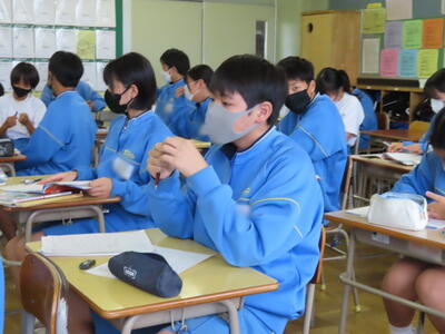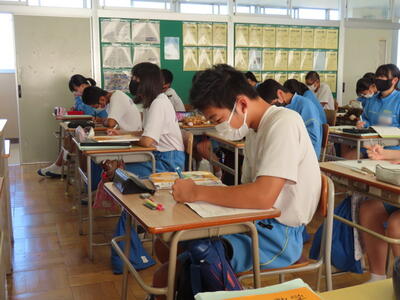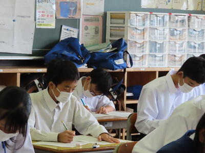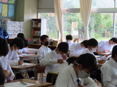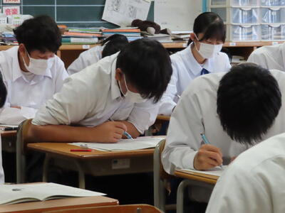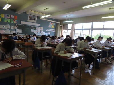 1・2年生はもちろんのこと、3年生も切替をして、真剣に授業に取り組んでいます。中間テストまで2週間を切り、一段と学習に熱が入ります。