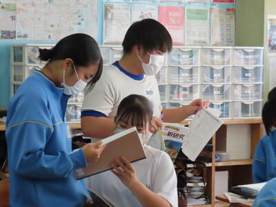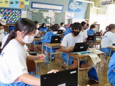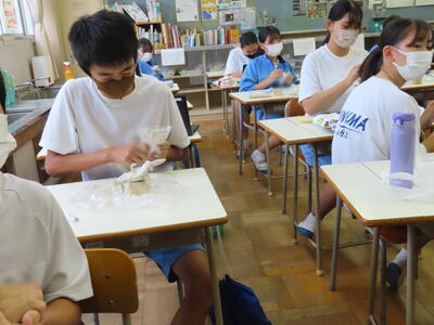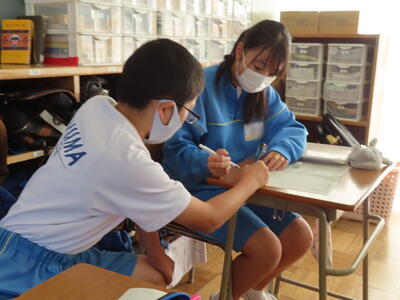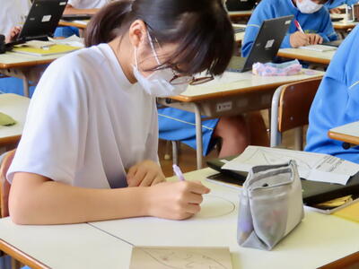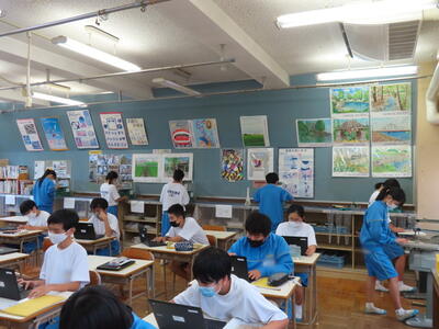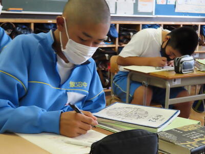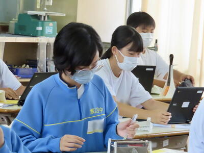 本日は授業の様子をお伝えします。美術では木彫品の型取りをしていました。また英語の授業では、比較級を学習していました。家庭科では間取りについて、数学は、学び合い教え合い(リトル・ティーチャー)活動をしていました。今日も生徒中心の主体的な学習をしています。