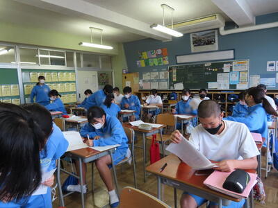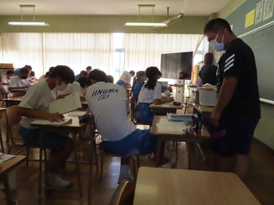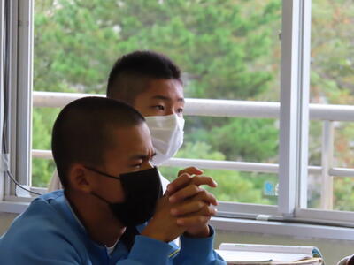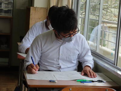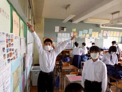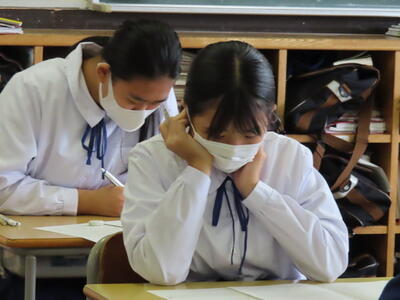 話は変わりますが、本日14時58分頃、比較的大きな地震がありました。先生たちは立って授業をしているので、最初気づかなかったようですが、生徒たちはすぐに机の下に身を隠し、安全を確保する行動ができていたとのことです。日頃のこうした行動が「もしも」の時に役立ちます。これからも「自分の命は自分で守る」を合言葉に適切な行動ができるよう、日頃から行動を確認しておきましょう。