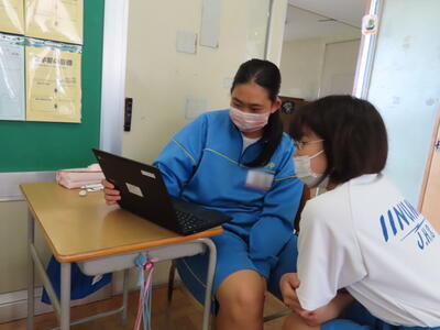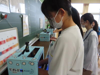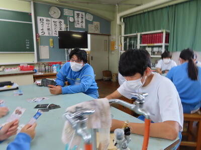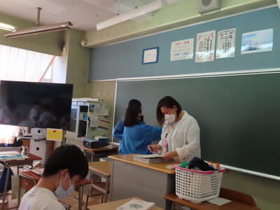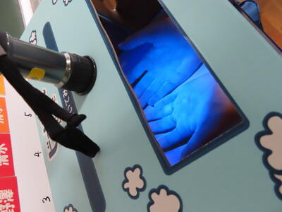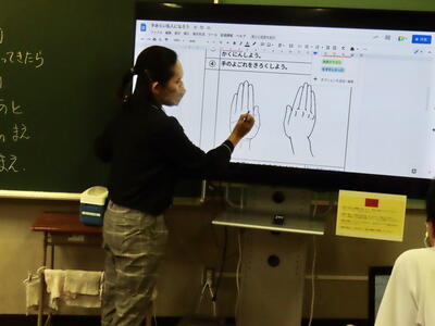 本日は、春日部市教育委員会の先生が本校の授業を見に来てくださいました。今日の授業のテーマは、「手洗い名人になろう」でした。それぞれが手を洗った後に、手洗いチェッカーを使い洗い残しのチェックをし、手を洗う際に気を付けるべきことを再確認しました。そして改めて手洗いの重要性を理解しました。手洗いチェッカーでのチェックには、生徒全員が興味津々でした。感染症もいまだ猛威を振るう状況です。私たちも自分の手洗いをもう一度見直し、健康的な生活を心がけたいですね。