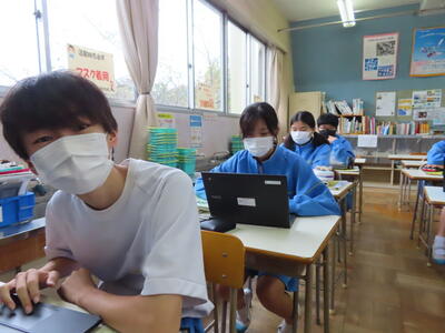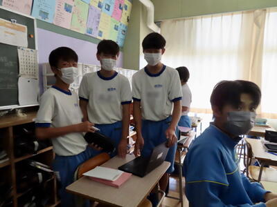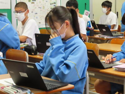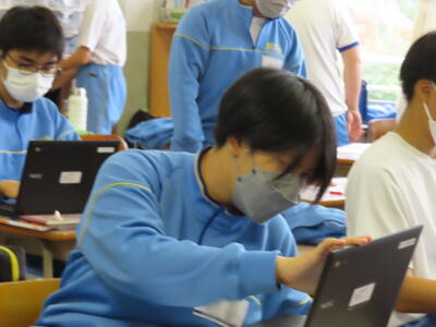 本日は、授業の様子をお伝えします。金曜日のしらさぎ祭の興奮冷めやらず、合唱のビデオを鑑賞しながら振り返りを行うクラス、中間テストの返却があり解答を仲間と話し合うクラス、ICT機器を活用しながら授業を行うクラス、それぞれですが、みんな熱心に活動に取り組んでいます。