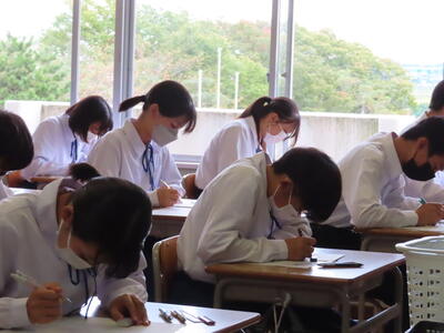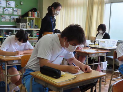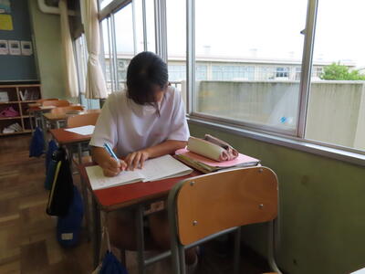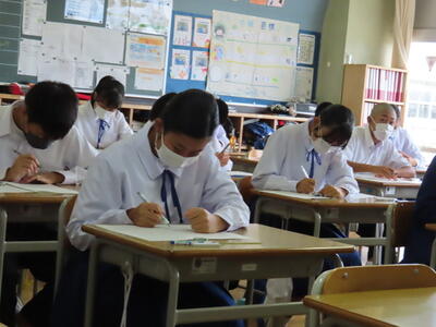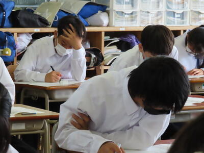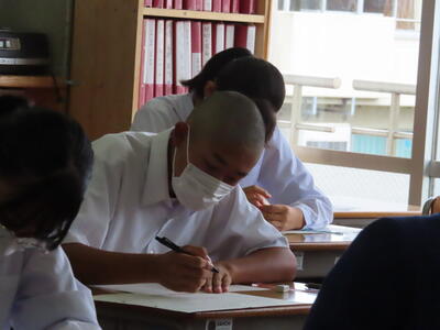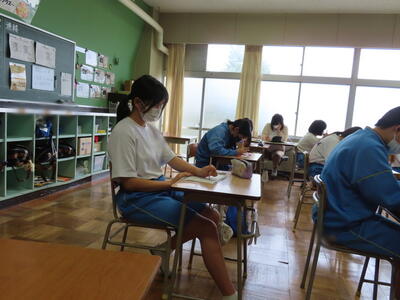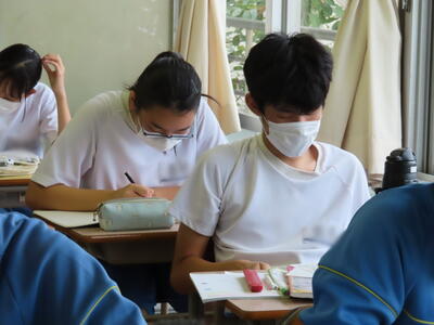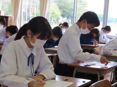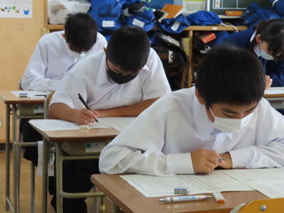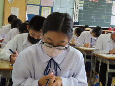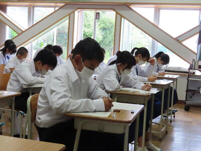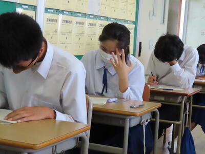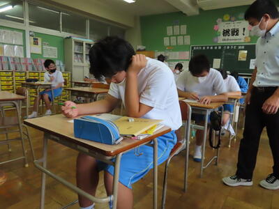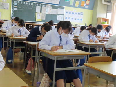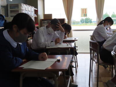本日は、中間テスト2日目でした。今日も生徒は真剣な表情でテストに臨んでいます。特に3年生は受験への意識もあり、どの生徒も引き締まった表情でした。日頃の学習の成果を発揮することはできたでしょうか?