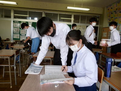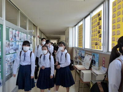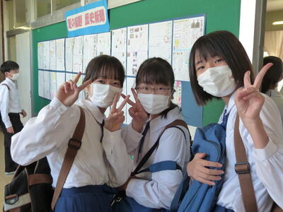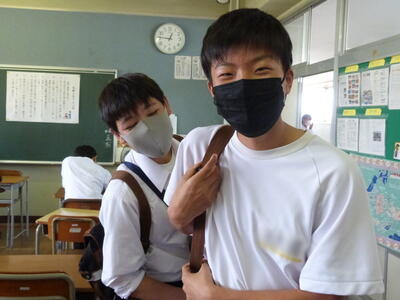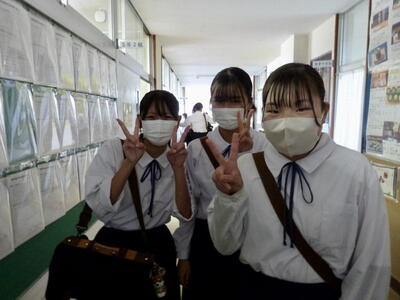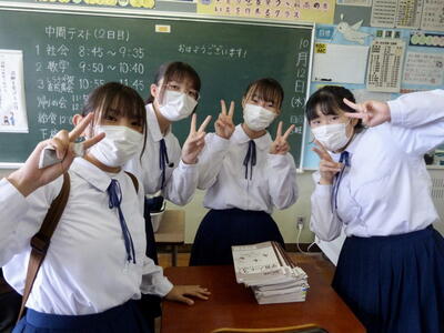 本日は、中間テスト1日目でした。今日の写真は、テスト終了下校前のホッとした様子です。明日も中間テストは続きますが、とりあえず今日1日は終了!という安堵の様子がうかがえます。今日の午後は、明日のテストに向けた最終確認をしていることと思います。決して諦めず、最後までがんばって明日を乗り切ってください。応援しています!