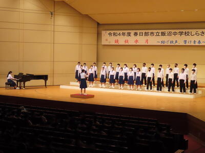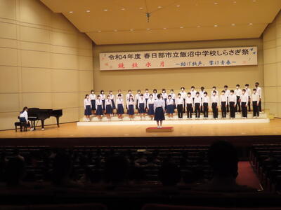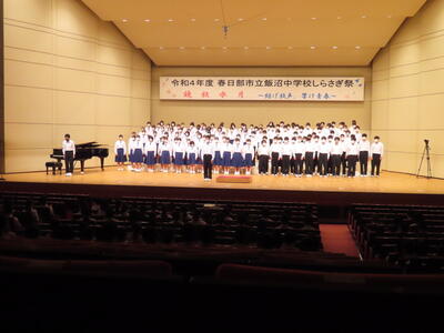 中間テストが終わるといよいよしらさぎ祭です。現在の飯中生にとっては初めての市民文化会館のホールでの開催です。みなさんの歌声の響き合いを楽しみにしています。