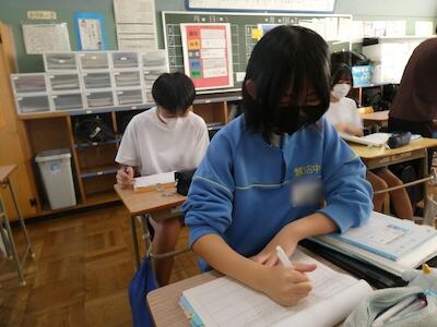 本日は、2学期中間テストの1日目です。ここまでの学習の成果を発揮し、がんばってください。