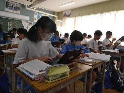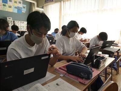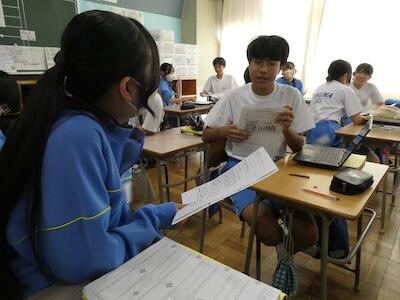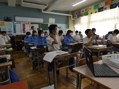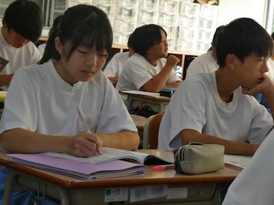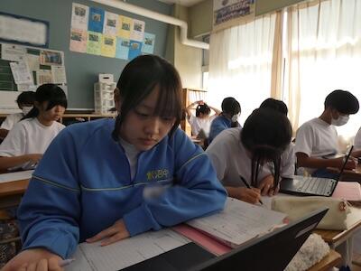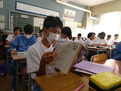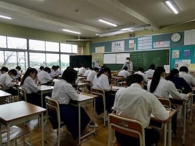 本日の授業の様子です。3年生の国語の授業では「実用的な文章を読む」というテーマでゴミの収集についてプリントをまとめていました。2年生の音楽は、クラスの合唱曲の練習をしていました。あと1ヶ月、どこまで仕上げられるか楽しみです。1年生の理科では、テスト対策として「身の回りの物質」について学習をしていました。中間テストが近づき、総まとめをしているクラスが多かったです。さぁ、来週は中間テスト、がんばりましょう!