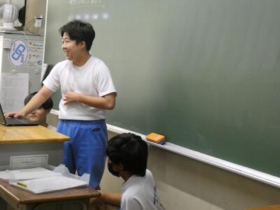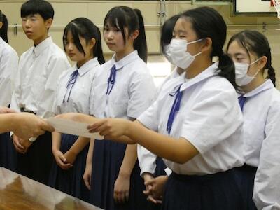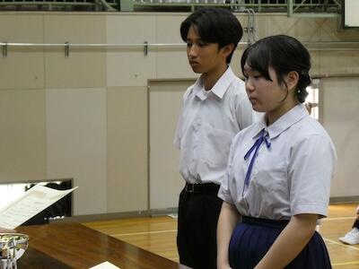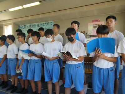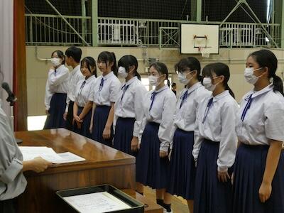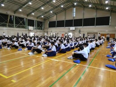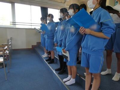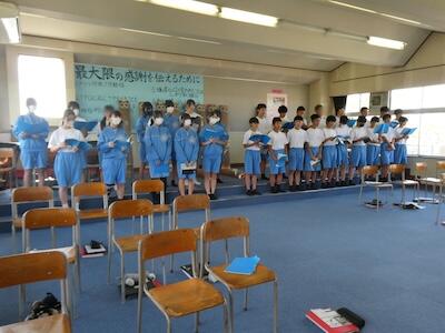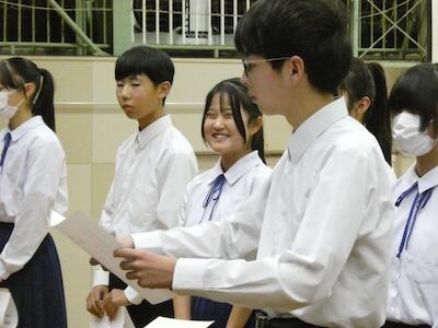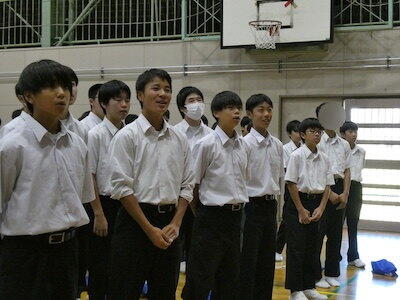 本日はテストの後に全校集会がありました。私からは、「テストが終わり、問題を解き直すだけでなく、振り返りから見えてくる課題をつかもう」という話をしました。その後、表彰があり、全体で合唱の練習を行いました。男子の声がよく出ていて、しらさぎ祭が楽しみになる合唱でした。