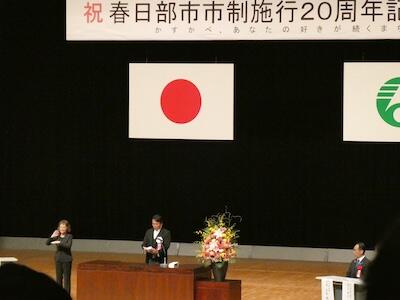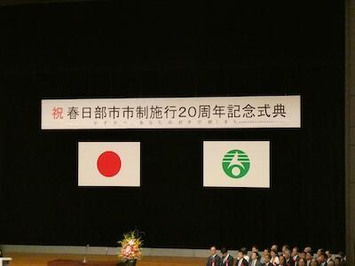 本日は、正和工業にじいろホール(春日部市民文化会館)にて春日部市市制施行20周年記念式典が開かれました。現在の春日部市は、2005年(平成17年)10月1日、春日部市と北葛飾郡庄和町との1市1町で新設合併して誕生しました。おめでとうございます。