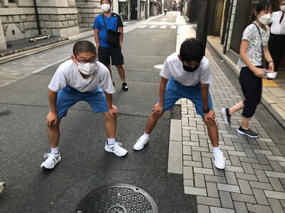 夜が明けるとともに飯中駅伝部は活動開始です。他の生徒よりひと足早く起床し、駅伝に向けてトレーニングをしました。早朝の鴨川はとても気持ちよかったと思います。がんばれ飯中生!