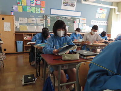 本日の授業の様子をお伝えします。美術の授業では、これまで制作していた立体物の色塗りがいよいよ始まりました。磨き込んだ制作物に色を入れるとまるで命が宿ったようになります。英語の授業では、ミライ·シード(タブレット活用ソフト)を使ってリスニング、スピーキングの練習をしていました。ネイティヴの声を使って練習できるのはとても効果的です。そのほかでも多くのクラスがタブレットを使いこなし、学習を進めていました。タブレットを活用した学習、そして社会の授業のように地図帳を使った学習と最も効果があがる方法を使い分け授業が行われています。学習の11月、集中してがんばっていきましょう!
