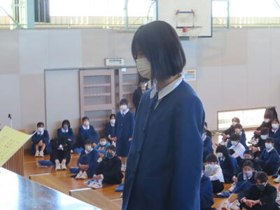 本日は、2学期終業式が行われました。最初に代表生徒による2学期の振り返りの発表がありました。それぞれが自己を見つめ、しっかりと振り返りをすることができました。校長式辞のあとは、表彰がありました。2学期後半も多くの生徒が活躍をしました。