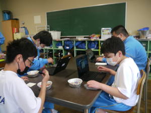 さて、そんな寒さをものともせず飯中生は元気いっぱいに学校生活を送っています。宇宙から見た地球の画像に目を輝かせたり、トマトが何科に属するのか仲間と話し合ったり、アイロンビーズの下絵をタブレットを使って熱心にさがしたりとひとりひとりが「学びたい」という気持ちに溢れています。貧欲な好奇心をもって様々な知識を吸収し、自ら「気づき」、「考え」、「行動」できる、これからの先行き不透明な時代を生き抜いていくことのできる力を身につけてほしいと思います。