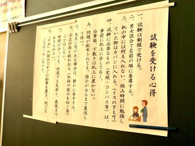 本日より3年生の期末テストが始まりました。受験期に入り、日々真剣勝負の授業が続いていますが、今日はその成果を発揮すべく全員が集中してテストに取り組んでいます。校長面接が続いていますが、どの生徒も志望校合格に向けて努力をしている様子が伝わってきます。テストは明日も続きます。がんばってください。