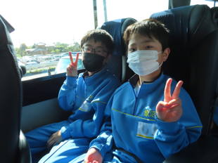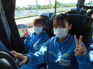 1号車バス内の様子です。私語もなく静かに乗車しています。感染症対策を徹底しながら、さしまへ向かいます。