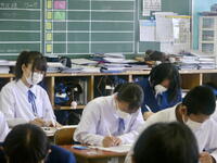 なかなかスッキリとした日がなく、今日も雨模様の1日です。さて本日は、1学期中間テストの1日目になります。定期テストは、今日まで学習した内容の定着度を測るものです。1年生にとっては、初めての定期テストとなります。小学校とは違い、出題範囲も広くなりますが、しっかりと準備することができたでしょうか。教室を回ると全学年、全ての生徒が真剣な表情で問題に向かっていました。持てる力を余すことなく発揮できるよう、最後まで諦めることなく頑張って欲しいと思います。中間テストは明日も続きます。