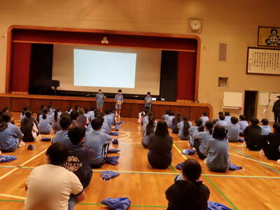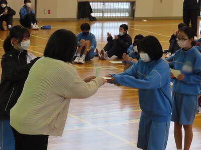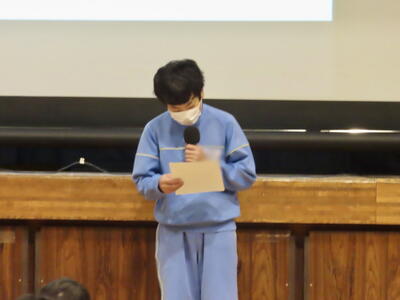 本日は、朝から冷たい雨が降り続いています。2学期終業式を明日に控え、各学年とも学年集会が行われました。代表生徒による2学期に振り返りに続き、表彰や学級委員会の発表など各学年趣向を凝らした活動が行われました。その後、職員から冬休みの生活や受験についてなどの話がありました。3年生は冬休みは受験勉強でホッとする時間はないかもしれません。でも自分で乗り越えなければならない人生最初のハードル。自分を信じてこのまま努力を続けてください。1・2年生は、生活のリズムを保ちながら、家族とともに過ごしてください。