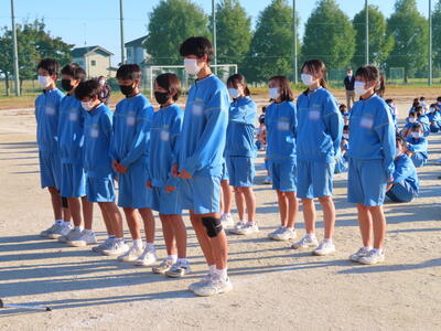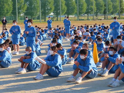 本日は、全校集会が行われました。校庭で集会を開き、全員で校歌を歌うということにチャレンジしました。全員で校歌を歌うのは3年ぶりとなります。幸い天気にも恵まれ、温かい中で集会を行うことができました。校長からは、相手を思いやる行動について話がありました。その後、全校で校歌を歌いました。ウォーミングアップをしたおかげでみんなで元気に歌うことができました。私は、全校生徒による合唱を初めて聴いたので、とても嬉しかったです。その後表彰があり、生徒指導担当からの話がありました。生徒指導担当の中で、「心のコップを上向きにし、(人の忠告を)素直に受け入れる姿勢を身につけよう」ということばが印象的でした。「飯中しぐさ」がたくさん見つかるといいですね。