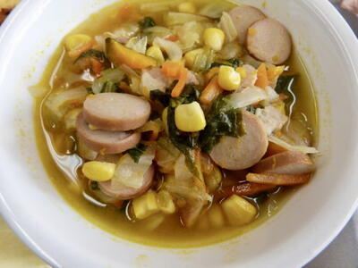 はちみつパン、牛乳、チキンのオーブン焼き、石のスープ、シーザーサラダ