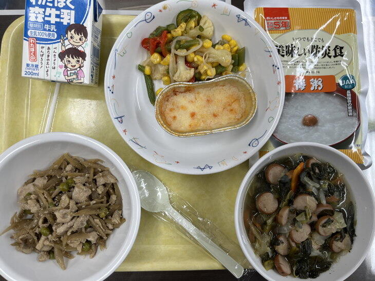 11月28日(月)今日の給食 投稿日時 : 2022/11/28 飯沼中学校 管理者 カテゴリ: 本日は、給食センターの炊飯設備故障のため、とりごぼうピラフが「災害用レトルト梅がゆ」と「とりごぼうピラフの具」に変更になりました。