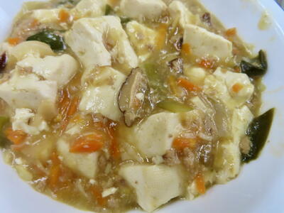 麦ごはん、牛乳、マーボー豆腐、里芋パオズ、もやしのゴマ風味