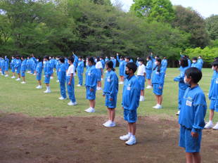あいさつの後は、応援席の確認とともに入退場の練習をしたのですが、3年生は、退場指示から応援席で腰を下ろして退場完了までかかった時間が約10秒!1・2年生も15~20秒で退場を完了させていました。指示を受け、全員が全速力で応援席へ戻ります。また全体が応援席から入場し、整列完了までも約20秒でした。練習から真剣に取り組める姿勢はとても立派でした。飯中の新たな10年、継承と創造はここから始まります!