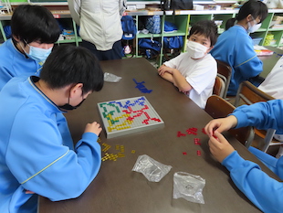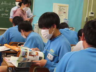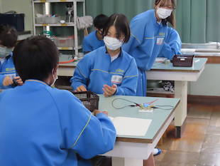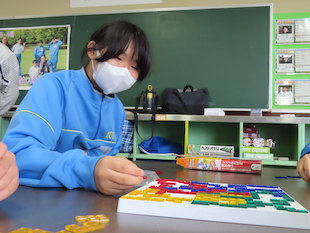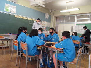 体育の授業では、1ヶ月後に行われる体育祭の練習がスタートしています。本日のぞかせていただいたクラスは、ソーラン節の練習を行っていました。明日は、全校で、ラベンダー体操の確認をする予定です。2年生の英語の授業では、ALTの先生と一緒に英語版の双六で楽しみながら英語学習をしていました。「Go forward 2 squares」--双六には、こんなことばが書かれていました。また理科の授業では、回路図を見ながら、実験をしていました。実験の結果を知りたくて輝く目が印象的でした。