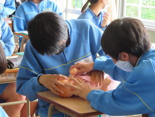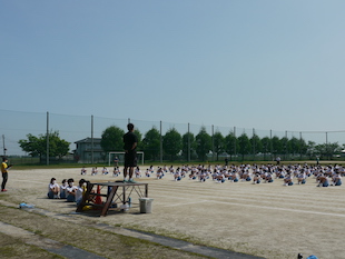 本日は、初夏を思わせるような日差しの強い日です。急激な気温の変化に熱中症などにならないよう、十分注意をしたうえで教育活動を行なっています。