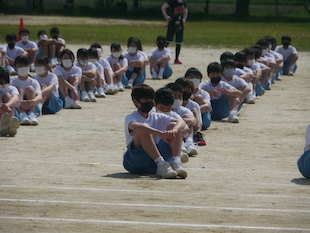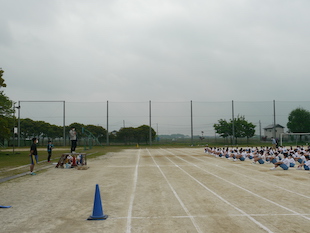 その後、入退場の練習となったのですが、2・3年生はもちろんのこと、1年生も昨日より数段素早く行動ができるようになっていました。全員が全力疾走で集合する様は、見ていても壮観です。真剣な気持ちがこちらにも伝わってきました。